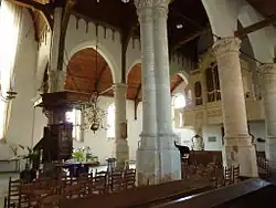 An einer Vorgängerkirche des heutigen spätgotischen Gotteshauses richtete Nicolaas van Putten 1307 ein Kollegiatstift ein. Er und seine Frau Aleidis van Strijen ruhen heute in einem marmornen Grabmal im Chor. Der in das Langhaus teilweise eingebaute Turm wurde in der ersten Hälfte, der einschiffige Langchor mit dreiseitigem Schluss in der zweiten Hälfte des 15. Jahrhunderts errichtet. 1515 wurde von einer großen Baufälligkeit berichtet. Danach erhielten das basilikale dreischiffige Langhaus und die Querhausarme ihre Gestalt. Nur der nördliche Langhausarm reicht über das Seitenschiff hinaus, der südliche Arm schließt an das Seitenschiff an, besitzt jedoch die Höhe des Mittelschiffes. Der Langchor und das nördliche Querschiff sind vom Gottesdienstraum abgetrennt, der gemäß reformierter Tradition auf die Predigtkanzel im Langhaus hin orientiert ist. Die Kirchengemeinde gehört zur 2004 geschaffenen Protestantse Kerk in Nederland und hat sich mit Nachbargemeinden zu dem Gemeindeverbund tweestromenland (Zweistromland) zusammengeschlossen.