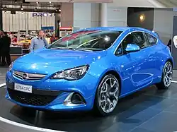 Im Sommer 2012 erschien mit dem OPC die sportlichste Version des Astra J. Er basiert wie sein Vorgänger Astra H OPC exklusiv auf dem Astra GTC und verfügt über einen 2,0-Liter-Turbo-Motor mit Borgwarner K04 Lader mit Benzindirekteinspritzung, der 206 kW (280 PS) leistet und ein Drehmoment von 400 Nm erzeugt. Sein Fahrwerk hat vorn die sogenannten „HiPerStrut“ (HiPer für High Performance, strut englisch für Federbein[7])-Federbeine, die auch im Insignia OPC eingesetzt wurden.[8]