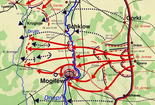 - ↑ Bericht Die Entwicklung der Lage bei der 4. Armee während der russischen Sommeroffensive 1944 und die Vorgänge bei den abgesprengten Verbänden, NARA T-312 R-244, S. 79–95.