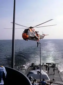 Die Hubschrauber SeaKing wurden zur Suche nach Treibminen und für Transporte zwischen Manama und den Einheiten in See eingesetzt.