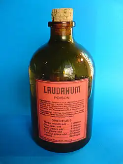 Im 20. Jahrhundert wurde als Laudanum eine Lösung von Alkohol, Opium, Safran, Gewürznelken- und Zimtessenzen angeboten.[15]