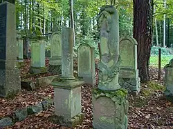 - Jehuda Löb Oppenheimer (* um 1650 in Worms; † 1701 in Laudenbach)[19] ehelichte Chawa „Eva“ Bacharach (* um 1660 in Worms; † 5. April 1701 in Laudenbach, bestattet auf dem Verbandsfriedhof in Hemsbach). Sie war die Tochter des Rabbi Jair Chajim Bacharach (1638–1702) und Urenkelin des Jehuda ben Bezal’el Löw (1512–1609).[20] Mit dem Einfall der Franzosen 1689 in Worms flüchtete er nach Bergstraße, die Nachkommen siedelten von hier aus nach Hoffenheim und Michelfeld.
