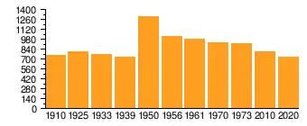 | Jahr | 1910 | 1925 | 1933 | 1939 | 1950 | 1956 | 1961 | 1970 | 1973 | 2010 | 2020 |