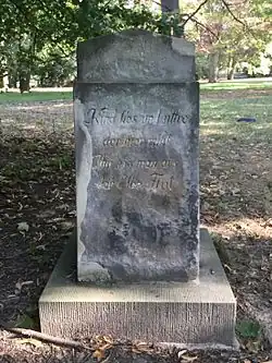 Die aus Sandstein gefertigte Stele entstand als Grabstein für ein 1854 im Alter von vier Jahren in der Elbe ertrunkenes Kind. Die vier Seiten des quaderartigen Steins sind mit Inschriften versehen.