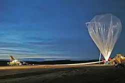 Start des Stratosphärenballons im Rahmen des EU-Projektes CAPANINA mit der optischen Nutzlast STROPEX. Nach einem 1,5-stündigen Aufstieg wurden Daten mit einer Rate von 1,25 Gbps von 22 km Höhe übertragen.