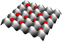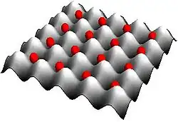 Werden die Senken eines dreidimensionalen optischen Gitters mit jeweils einem Atom gefüllt, so hat es viele Eigenschaften von Kristallen. Solche optischen Gitter haben gegenüber den aus der Festkörperphysik bekannten Systemen den Vorteil, dass sich ihre Parameter durch das verwendete Laserlicht leicht verändern lassen. Sie können daher als Modellsysteme für Probleme aus der Festkörperphysik verwendet werden und gelten als aussichtsreiche Kandidaten für die Realisierung eines Quantencomputers.