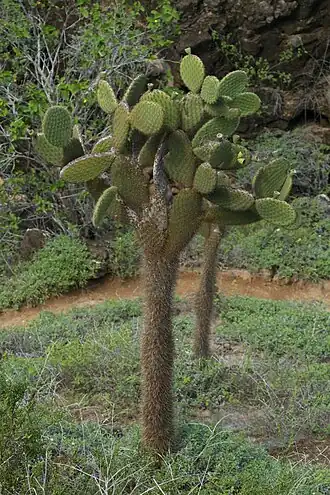 Opuntia megasperma ist auf den Galápagos-Inseln verbreitet.