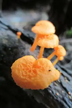 Orangeroter Porenhelmling (Favolaschia calocera) | ||||||||||||