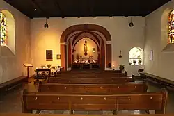 Auf der Südseite der Kapelle stehen drei Kruzifixe aus der Werkstatt der Beruser Bildhauerbrüder Guldner. Davor befindet sich das Grab von Wilhelm Kornelius (1905–1978), der hier von 1941 bis 1978 Pastor war.