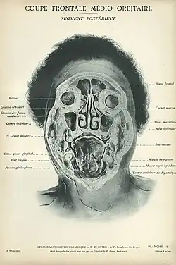 - Fissura orbitalis inferior (nur Mensch): zum Durchtritt der Vena ophthalmica inferior, Nervus zygomaticus und Nervus infraorbitalis (bei Tieren Foramen rotundum oder Foramen orbitorotundum)