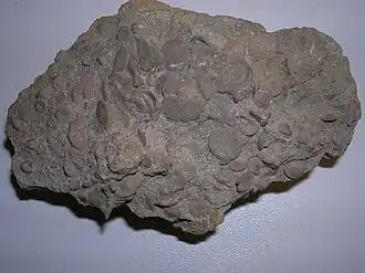 Orbitolinen in kretazischem Kalkstein; Portugal | ||||||