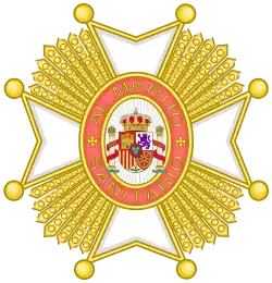 Kommandeure dekorieren die Auszeichnung als Halsorden mit einem 30 mm breiten, ockergelben mit 4 mm breiten schwarzen Seitenstreifen, die 2 mm vom Rand stehen. Kommandeure mit Stern erhalten zusätzlich einen Bruststern. Das einfache Kreuz mit derselben Bandfarbe an der in Spanien üblichen goldenen Querspange an der linken Brustseite. Zum Großkreuz gehört das gleiche hier beschriebene Kreuz, wird aber am Großen Band, das von der rechten Schulter kommend zur linken Hüfte hin getragen. Die Enden sind durch eine Schleife verbunden. Sein ockergelbes Band ist 100 mm breit und hat 12 mm breite ebenfalls schwarze Seitenstreifen, die 6 mm Abstand vom Rand aufweisen. Dazu wird ein Bruststern an der linken Brustseite getragen, dessen Größe sich auf 55 mm beläuft und dessen sieben Strahlen je Kreuzwinkel brillantiert ist.[2]