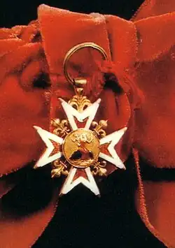 - ↑ Gustav Adolph Ackermann: Ordensbuch sämmtlicher in Europa blühender und erloschener Orden und Ehrenzeichen. Rudolph & Dieterici, 1855 (eingeschränkte Vorschau in der Google-Buchsuche).