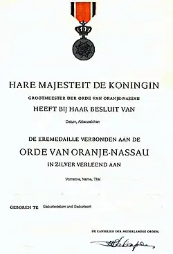 → Träger des Ordens von Oranien-Nassau (Offizier)