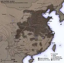 Die Han-Dynastie begann im 2. vorchristlichen Jahrhundert unter Kaiser Han Wudi, die Xiongnu zu bekämpfen, und besiedelte die Region der Ordos unter der Kommandantur Shuofang 127 v. Chr. Zuvor waren bereits von Qin und Zhao Kommandanturen eingerichtet worden, bis diese 209 v. Chr. von den Xiongnu überrannt wurden.[18]