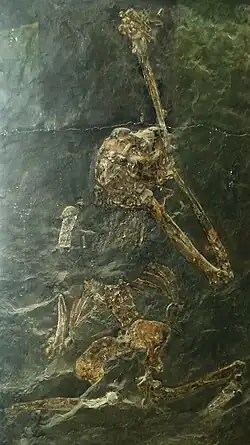 Oreopithecus ist eine ausgestorbene Gattung der Primaten, deren Individuen möglicherweise aufrecht gehen konnten. Die Gattung gilt nicht als direkter Vorfahre des Menschen (Homo sapiens), wird aber zu den Stamm-Hominoidea gezählt.[1] Die Fossilien von Oreopithecus stammen aus dem oberen Miozän und wurden in die Zeit vor rund 8 bis 7 Millionen Jahren datiert.