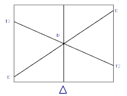 Für Ionen mit einer der Konfigurationen d1, d4, d6 oder d9 ergibt sich im D-Orgel-Diagramm, dass sich der D-Grundterm in einen T2(g)- und in einen E(g)-Term aufspaltet. Mit steigender Feldstärke, also ausgehend von der Mitte des Diagramms hin zu einer der beiden Seiten nimmt deren energetischer Abstand zu. Links im Diagramm finden sich hier die d1- oder d6-Tetraeder und die d4- und d9-Oktaeder, entsprechend findet sich rechts im Diagramm die d4- oder d9-Tetraeder und die d1- und d6-Oktaeder.[2]