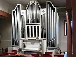 1975 Vöhl Martinskirche II/P 19 Neubau Wolfgang Böttner in das Gehäuse der Vorgängerorgel von Jakob Vogt (1886), überholt 2018 → Orgel