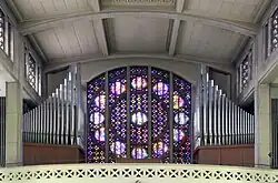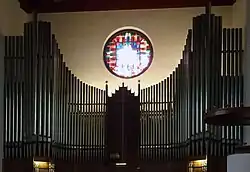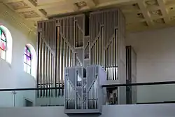 III/P | 36 | 1966 durch Kuhn auf 42 Register erweitert. 2005 neuer elektrischer Spieltisch von Mathis Orgelbau (Näfels) auf der Empore. Ab 2012 schrittweiser Umbau und Erweiterung auf 47 Register durch Thomas Gaida (Wemmetsweiler). Einzeltonsteuerung mehrerer Register und Rückführung von Registern auf den Stand von 1940. |