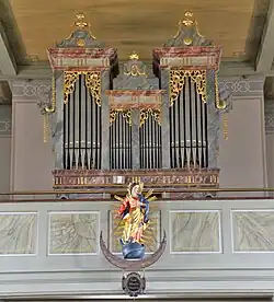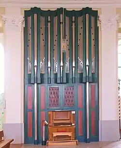 II/P | 30 | Ebenerdig um das Eingangsportal herumgebaut → Orgel |