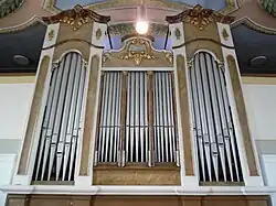 die Orgel wurde 2016 durch ein neues Instrument ersetzt.[13] | |