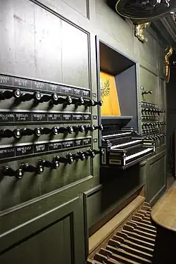- Windladen: Rugpositief (SH), Hoofdwerk (A), Bovenwerk (S), Pedaal (S/SH/vO)