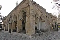 - ↑ Bei der älteren Lala Sahin Pașa Türbe in Mustafakemalpașa geht dieses wohl auf einen einbezogenen byzantinischen Baurest zurück.