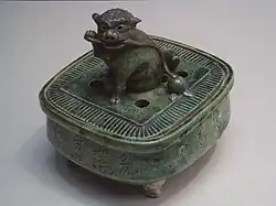 - Grüne Oribe-Keramik (青織部, ao oribe) Keramik mit klassischer grüner Glasur und Unterglasurmalerei
