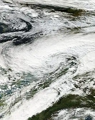 Das sich entwickelnde Tief bildete ein baroklines Blatt, bevor es sich unter dem Jetstream hindurchschob; dieser absorbierte bereits das Resttief des früheren tropischen Sturmes Lorenzo im mittleren Nordatlantik.[11] Die tropische Luft jenes Sturms versorgte das sich entwickelnde Tiefdruckgebiet mit ausreichend Energie, verstärkte den Jet Stream und trug dazu bei, dass sich das Tiefdruckgebiet in einem Gebiet intensivierte, das näher an Europa lag als üblich. Dadurch setzte eine rapide Intensivierung ein, bevor der Sturm auf Westeuropa traf.