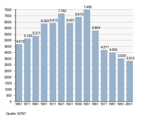 - ↑ Bilancio demografico e popolazione residente per sesso al 31 dicembre 2024. ISTAT. (Bevölkerungsstatistiken des Istituto Nazionale di Statistica, Stand 31. Dezember 2024).