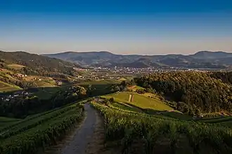 Der Naturraum umfasst die von Löss und Lösslehm überdeckten westlichen Vorberge des Nordschwarzwaldes.[2] Er wird durch die Täler der Schwarzwaldflüsse Alb, Murg, Oos, Bühlot, Acher und Rench gegliedert und reicht im Süden bis an das Kinzigtal. Die Landschaft wird intensiv genutzt und ist überwiegend von Wein- und Obstbau geprägt. Sie ist vergleichsweise dicht besiedelt, wobei sich die größeren Siedlungskerne auf die Tallagen der genannten Flüsse konzentrieren.