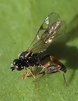 - ↑ a b c Stephanie Benjaminsson: The Morphology of Ichneumonidae: Orthopelmantinae collected during Swedish Malaise Trap Project: Using MRBuyers and TNT. (PDF, 1,6 MB) Högskolan Halmstad, 26. Juni 2013, abgerufen am 8. Mai 2021 (englisch).