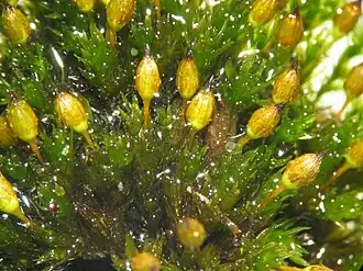 Kalyptra, Kapsel, Seta, bei 30-facher Vergrößerung -