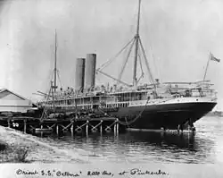 Das 7.945 BRT große Dampfschiff wurde bei der Werft Vickers, Sons & Maxim in Barrow-in-Furness gebaut und für den gemeinsamen Australiendienst der Pacific Steam Navigation Company (PSNCo) und der Orient Steam Navigation Company (Orient Line) in Dienst gestellt. Das 152,4 Meter lange und 16,85 Meter breite Passagier- und Postschiff lief am 10. Juli 1899 vom Stapel und wurde auf den Namen Ortona getauft. Es war ein Einzelbau ohne Schwesterschiff. Die Ortona konnte 130 Passagiere Erster Klasse, 162 Zweiter Klasse und 300 Dritter Klasse an Bord nehmen.