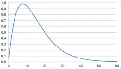 Kontrastempfindlichkeitsfunktion des menschlichen Auges über der Ortsfrequenz in Linienpaaren pro Grad