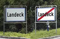 Daneben gibt es noch die Ortsbezeichnungstafel (schwarze Schrift auf Weiß ohne blauen Rand) für Orte, die kein Ortsgebiet sind und eine Tafel Ankündigung für Erholungsorte, eine „die Gemeinde näher beschreibenden Tafel“ mit weißer Schrift auf Grün, die nicht explizit nach StVO geregelt sind, sondern eine Sondertafel[7] gemäß Richtlinien und Vorschriften für das Straßenwesen (RVS)[8] sind und unterhalb von verschiedenen anderen Verkehrszeichen angebracht werden.