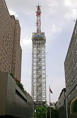 Im unteren Teil des Turmkorbs war das Logo der Sendegesellschaft ABC (Asahi Broadcasting Corporation) angebracht. Unterhalb des Turmkorbs befanden sich Richtfunkantennen. Über dem Turmkorb befand sich ein weiß-rot lackierter Antennenmast. Auf 140 Meter Höhe nahm der Querschnitt der Mastkonstruktion ab. Die letzten Meter wurden von einem Stab bekrönt.