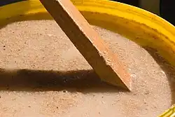 Zwei verschiedene Zubereitungsarten werden unterschieden. 1. Kochendes Wasser und Mahangumehl werden zu einem Brei verrührt und dann zur abgekühlten Masse Sorghum hinzugefügt. Zuletzt wird mit kaltem Wasser aufgefüllt. 2. Warmes Wasser wird mit Mahangu- und Sorghummehl direkt zu einem Brei verrührt. Zuletzt wird mit kaltem Wasser aufgefüllt.