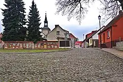 Die Stadt liegt zwischen zwei großen Teichen und Hügeln zehn Kilometer nordöstlich der Stadt Leszno (Lissa) und etwa zwanzig Kilometer südlich der Stadt Kościan (Kosten).