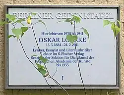 - ↑ Jan Röhnert: Oskar Loerke. In: Heinz Ludwig Arnold (Hrsg.): Kindlers Literatur Lexikon. 3., völlig neu bearbeitete Auflage. 18 Bande J.B. Metzler, Stuttgart / Weimar 2009, ISBN 978-3-476-04000-8, Band 10, S. 252–254, hier 252.