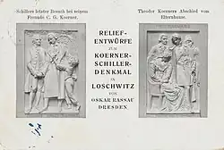 - Entwurf Schiller-Körner-Denkmal in Loschwitz, Architekten Martin Pietzsch, Ausführung Bildhauerarbeiten Adolf Schwarz[7]