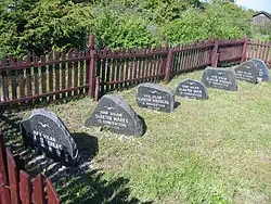 Der Friedhof der Insel liegt im Nordosten der Insel. Dort stehen zwei Eichen nebeneinander. Sie werden im Volksmund Adam und Eva genannt.[4]