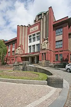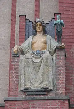 Durch weitere Mitwirkende erhielt dieser Zweckbau zusätzlichen Architekturschmuck. Die zwei weiblichen Figuren am Haupteingang, die mit Kunst und Gewerbe bezeichnet werden, schuf 1912 Vojtěch Sucharda. Sie sind aus einzelnen glasierten Keramikelementen zusammengesetzt und etwa fünf Meter hoch. Die gestalteten Glasfenster im Treppenhaus und Foyer schuf František Kysela. Die Mosaikarbeiten in der zweiten Etage sind ein Werk des Malers Jiří Novák aus dem Jahr 1931.