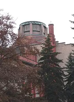 Zur Gestaltung der Fassade wurden normal gebrannte und glasierte Ziegel verwendet, durch deren wechselnde Anordnung Muster erzeugt werden. Vereinzelte Abdeckungen bestehen aus Sandstein. Die Wandflächen ohne Ziegelverblendung tragen einen horizontal gegliederten Strukturputz.