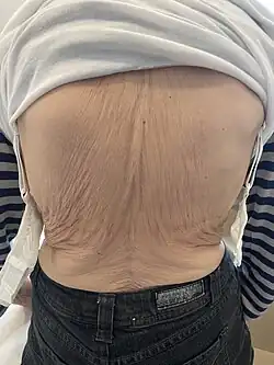 - Langzeittherapie mit Kortikosteroiden (Cortisol), insbesondere bei höheren Dosen (analog: Cushing-Syndrom) und v. a. bei oraler Einnahme (bei inhalativen und bei topisch angewendeten Präparaten ist der Effekt aufgrund der niedrigen kumulativen Dosis eher gering)