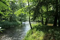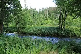 ![]() Osterbach bei Wilhelmsreut mit Ilztalbahn-Trasse im Hintergrund. | ||