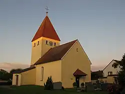 Im Dorfanger stehen die Kirche mit ummauertem Friedhof, die ehemalige Schule, das ehemalige Ochsenhirtenhaus und kleine Gemeindebauten sowie die Dorflinden.