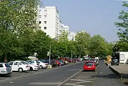 Auf der Fläche eines ehemaligen preußischen Exerzierplatzes im Nordwesten des Ortes wurde Anfang der 1970er-Jahre in verdichteter Hochhausbauweise Wohnraum für 2500 Menschen geschaffen. Ein Teil der Wohnhäuser wurde mit öffentlichen Mitteln gefördert, andere wurden als Eigentumswohnungen verkauft. Die bis zu 14 Etagen hohen Wohnhäuser wurden in der Anfangszeit von der Öffentlichkeit als Musterbeispiel des modernen Sozialen Wohnungsbaus angesehen, doch schon einige Jahre später wurde die Wohnlage von einem Großteil der Bevölkerung als unattraktiv empfunden, sodass der Straßenzug allmählich verwahrloste. Im Jahre 2002 wurde die Siedlung in das Förderungsprogramm Sozialraum mit erhöhtem Erneuerungsbedarf aufgenommen. Im Jahre 2007 lebten in der Siedlung rund 2800 Menschen, von denen rund 70 % einen Migrationshintergrund aufweisen.[27]