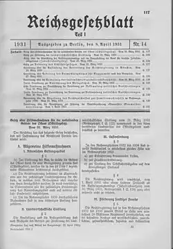 Der Reichsfinanzminister Graf Schwerin von Krosigk berichtete am 13. Januar 1933 im Haushaltsausschuss über die Finanzlage der Länder und Gemeinden. Bei Stimmenthaltung der Deutschnationalen Volkspartei nahm der Ausschuss einen Antrag des Zentrums an, wonach geklärt werden sollte,