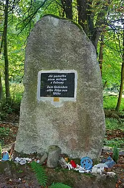 - Gedenkstein für alle Toten von Ostrov / Wöhr; die Gedenktafel an dem ehemals für die Gefallenen des Ersten Weltkrieges errichteten Stein wurde während der Zeit des Truppenübungsplatzes Prameny zerstört. Im Jahre 2012 wurde durch ehemalige Bewohner eine neue zweisprachige Gedenktafel angebracht.